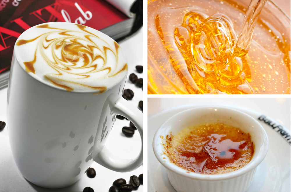 果糖,蜂蜜糖浆,黑糖糖浆,焦糖,香芋,香草,奶味,花生焦糖,巧克力,太妃,榛果,牛奶,枫糖,芒果,草莓,木瓜,蓝莓,冬瓜,哈密瓜,蔓越莓,香蕉,奇异果.