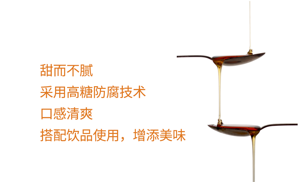采用高糖防腐技术,口感清爽,甜而不腻,是为搭配咖啡,奶茶等饮品而研发调制的。
