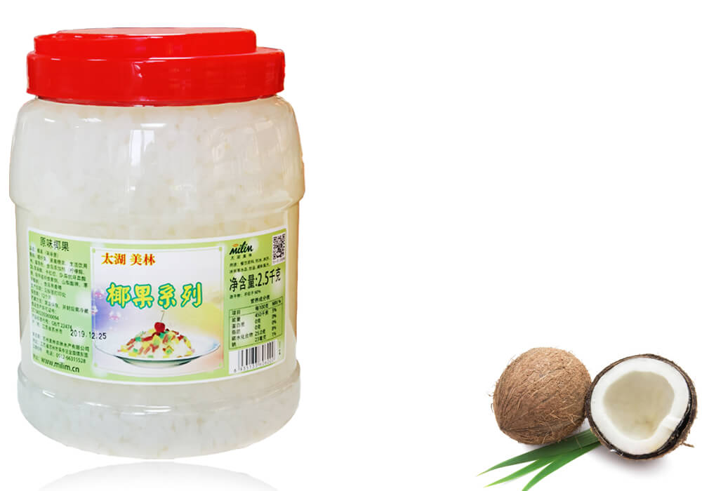 采用高糖防腐技术,我方椰果最大特点就是在口感方面脆性比较好,即使添加到热饮中,其脆性也不会受到影响,主要用作冷热饮的添加物。